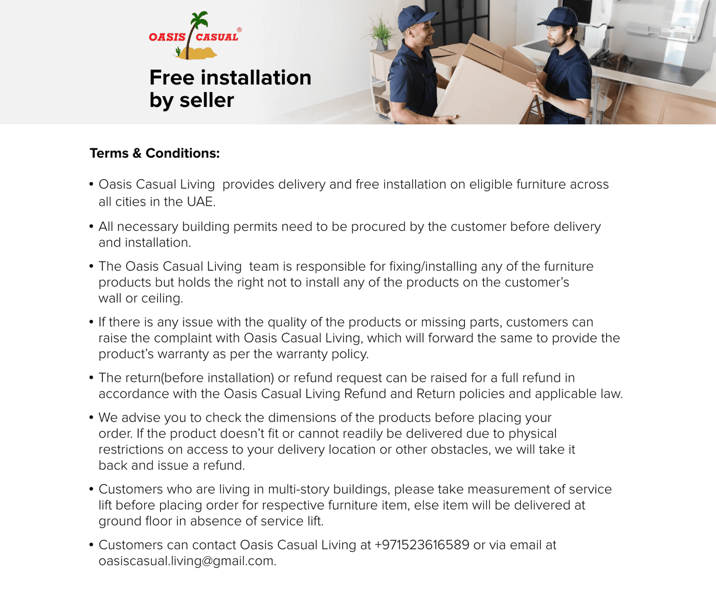 Oasis casual free installation