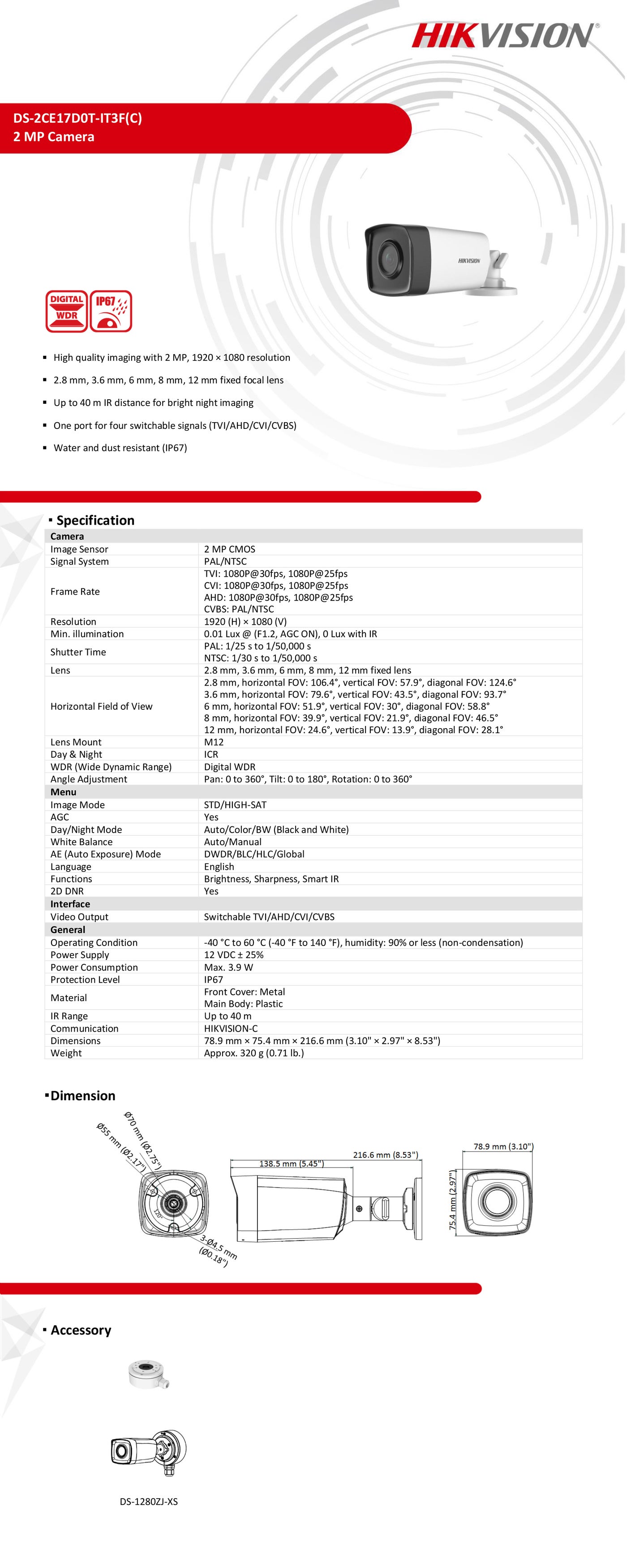 | Model Number | DS-2CE17D0T-IT3F(C) |
