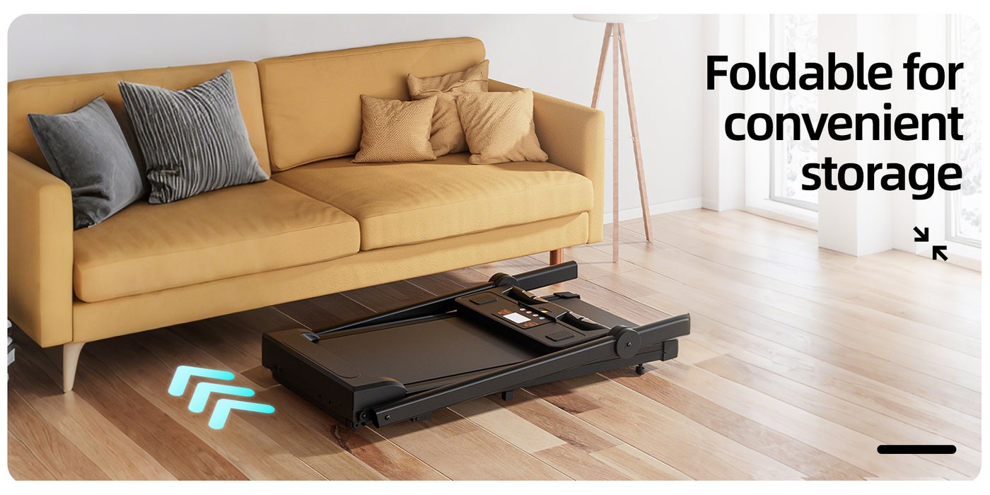 Stay on top of your fitness goals with AI heart rate intelligent running, which monitors your heart rate in real time and adjusts settings to optimize your session. Its full folding design, paired with front rollers, allows easy storage in small spaces.