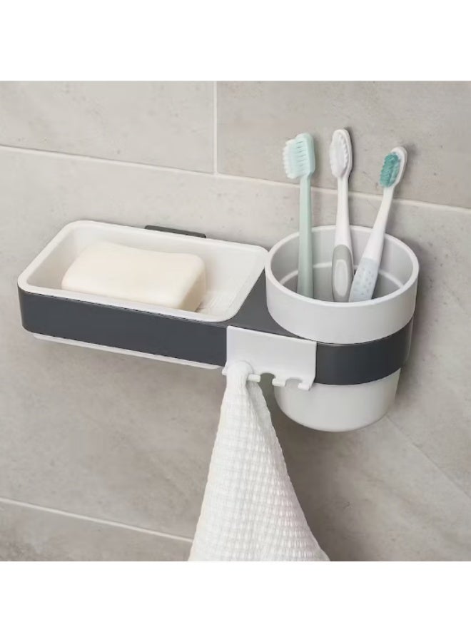 حوّل حمامك إلى مساحة أكثر تنظيمًا ونظافة مع حامل فرش الأسنان والصابون الجداري 3 في 1 المصمم ليجمع بين العملية والتصميم الذكي في منتج واحد. هذا المنظم الجداري يمنحك حلاً متكاملاً لترتيب فرش الأسنان، معجون الأسنان، الصابون، بالإضافة إلى كوب مضمضة مدمج، مما يساعدك على الحفاظ على حمام مرتب وخالٍ من الفوضى.