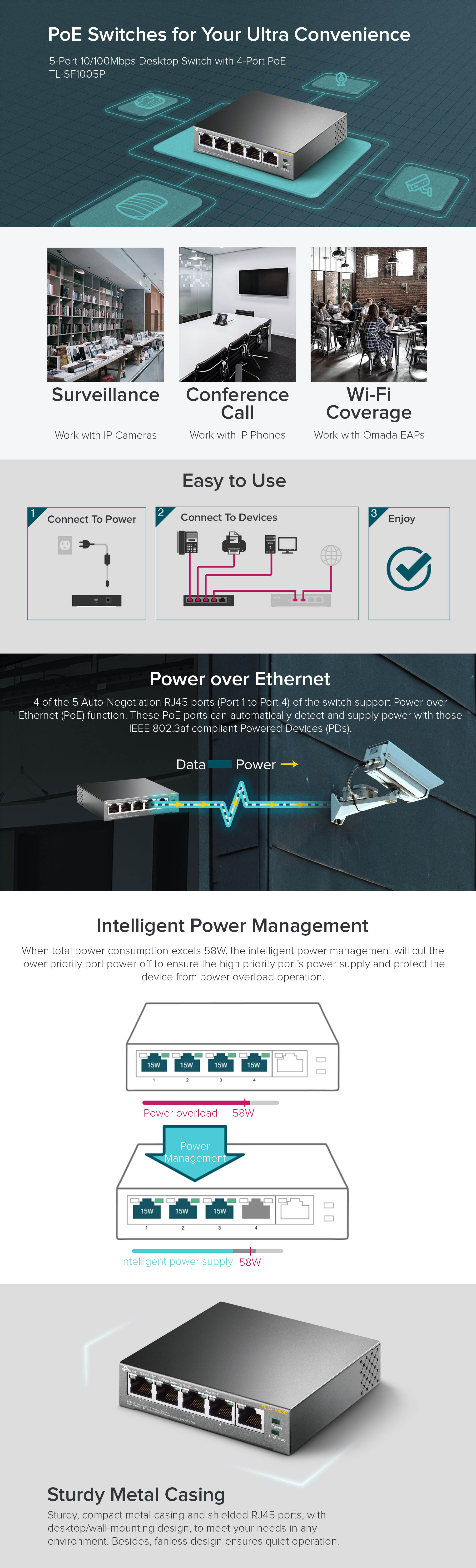 | محتويات العلبة | 1xTL-SF1005P, 1xPower Adapter, 1xUser Guide |