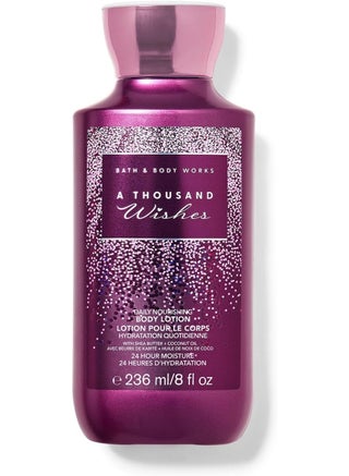 لوشن الجسم المغذي اليومي من باث آند بودي وركس ألف أمنية (236 مل) هو لوشن فاخر ومرطب للجسم غني بزبدة الشيا وفيتامين هـ. يتميز برائحة دافئة ومتألقة تمزج بين روائح الفواكه والزهور والنكهات الحلوة - مما يجعله مفضلًا للاستخدام اليومي ولتقديمه كهدية.