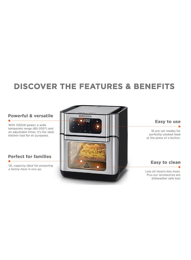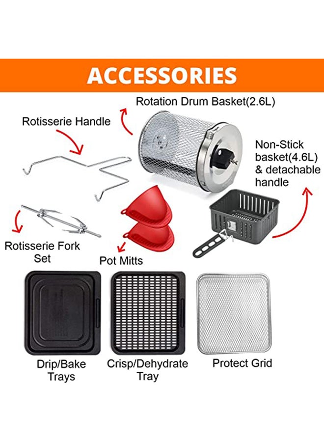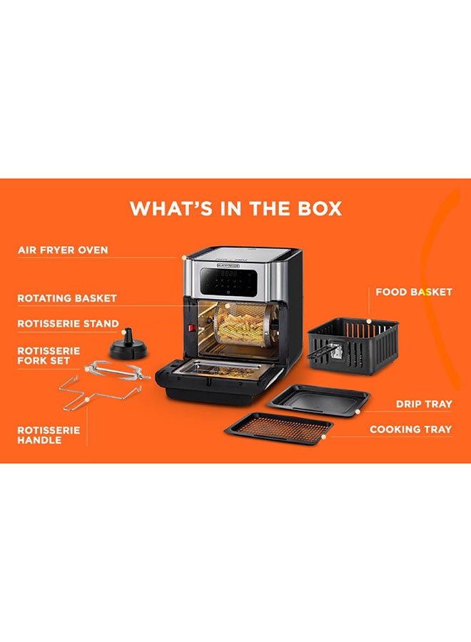 | محتويات العلبة | Air Fryer, Food Basket with Handle, Rotisserie Handle & Rotisserie Stand |