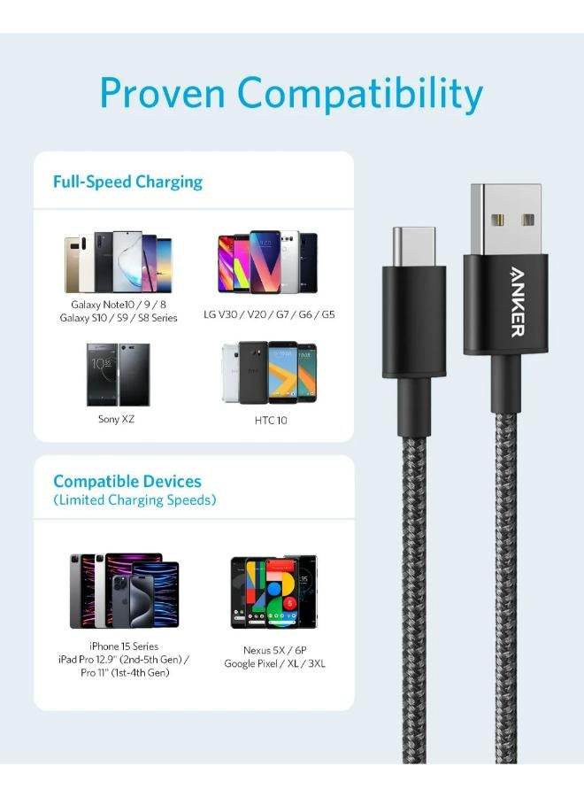 كابل أنكر نايلون USB-A إلى USB-C - 6 قدم ، 60 واط ، شحن سريع