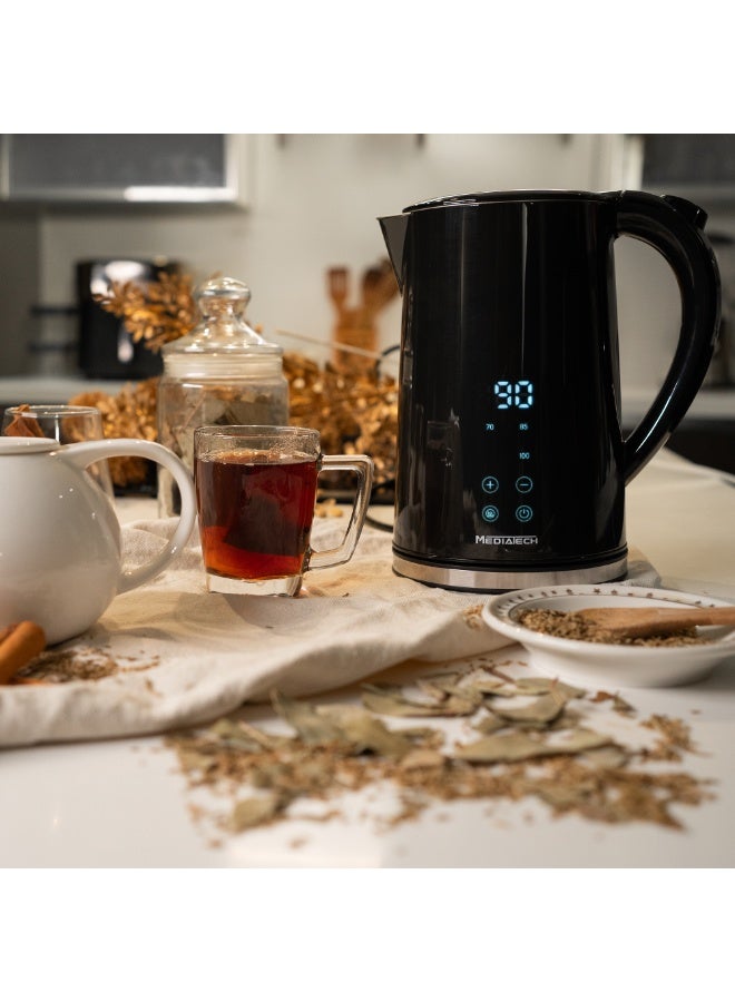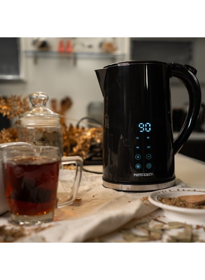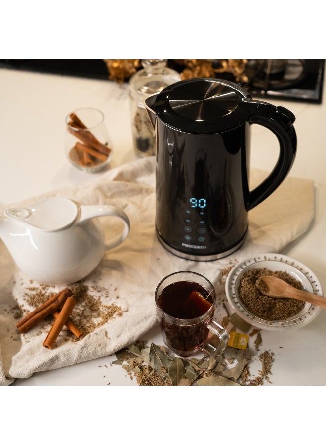 220-240 فولت ~ 50-60 هرتز 2200 واطالسعة: سعة 1.7 لتر، مثالية لجميع المشروبات الساخنة واحتياجات الطهي.خارجية آمنة للمس: تحافظ القشرة العازلة للحرارة على برودة سطح الغلاية الخارجي مقارنة بالداخل لضمان الاستخدام الآمن.عرض شاشة رقمية لاختيار درجة الحرارة المثالية: تحتوي على 5 درجات حرارة محددة مسبقًا، تتناسب تمامًا مع ذوقك واحتياجاتك: 70°C / 80°C / 90°C / 100°C.داخلية من الفولاذ المقاوم للصدأ: يوفر الداخل الأملس من الفولاذ المقاوم للصدأ أنظف وأكثر الطرق أمانًا لتسخين الماء.بناء بجدار مزدوج للسلامة: يحافظ على الحرارة في الداخل بينما يضمن أن الطبقة الخارجية تبقى آمنة للمس، حتى مع وجود الماء المغلي بداخله.
