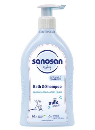 سانوسان شامبو واستحمام للعناية اليومية بالمولود والرضيع، مثالي لتنظيف بشرة الطفل الحساسة وشعره الناعم برفق. تركيبة خالية من الدموع والبارابين، مناسبة للشعر والبشرة الحساسة، يحتوي على 93% من مكونات طبيعية المصدر، 500 مل، صنع في ألمانيا.