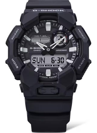 GA-010-1ADR: G-Shock analog-digital watch with black case, 200M water resistance, bold and rugged.