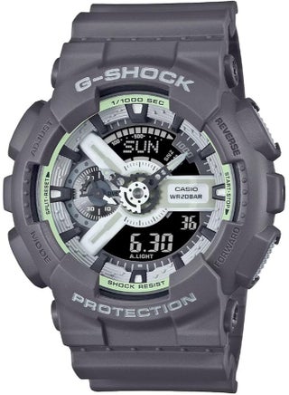 GA-110HD-8ADR: G-Shock analog-digital watch with grey case, heavy-duty design, 200M water resistance, industrial style.