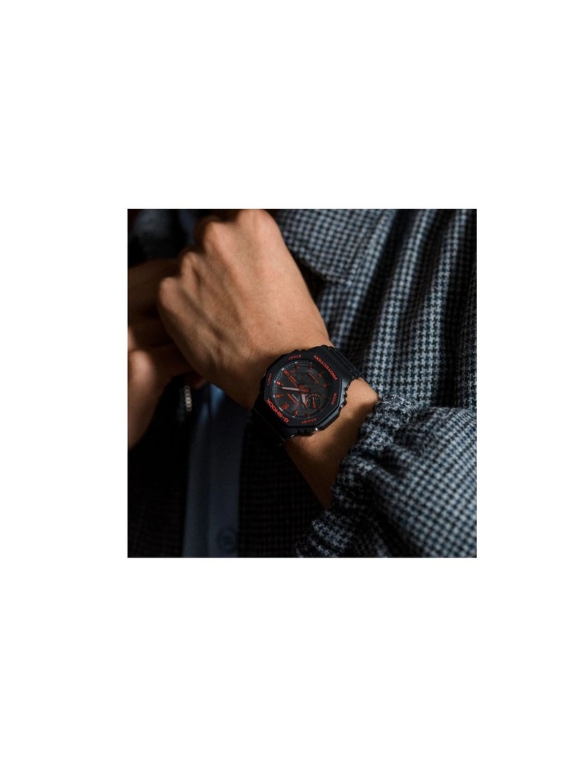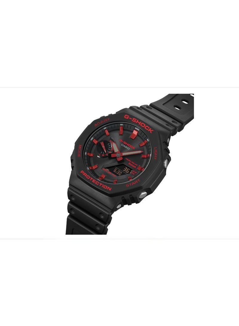 GA-B2100BNR-1ADR: G-Shock analog-digital watch with black case and red accents, Bluetooth, 200M water resistance, bold and urban.