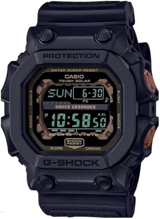 GX-56RC-1DR: G-Shock King model with black case and red accents, 200M water resistance, rugged and aggressive.