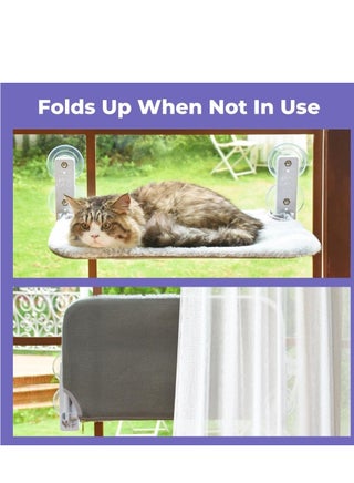 أرجوحة قطط مع 4 أكواب شفط قوية وإطار من الفولاذ المقاوم للصدأ الصلب و2 أغطية قابلة للطي، سرير قطط قابل للطي للاستخدام الداخلي.