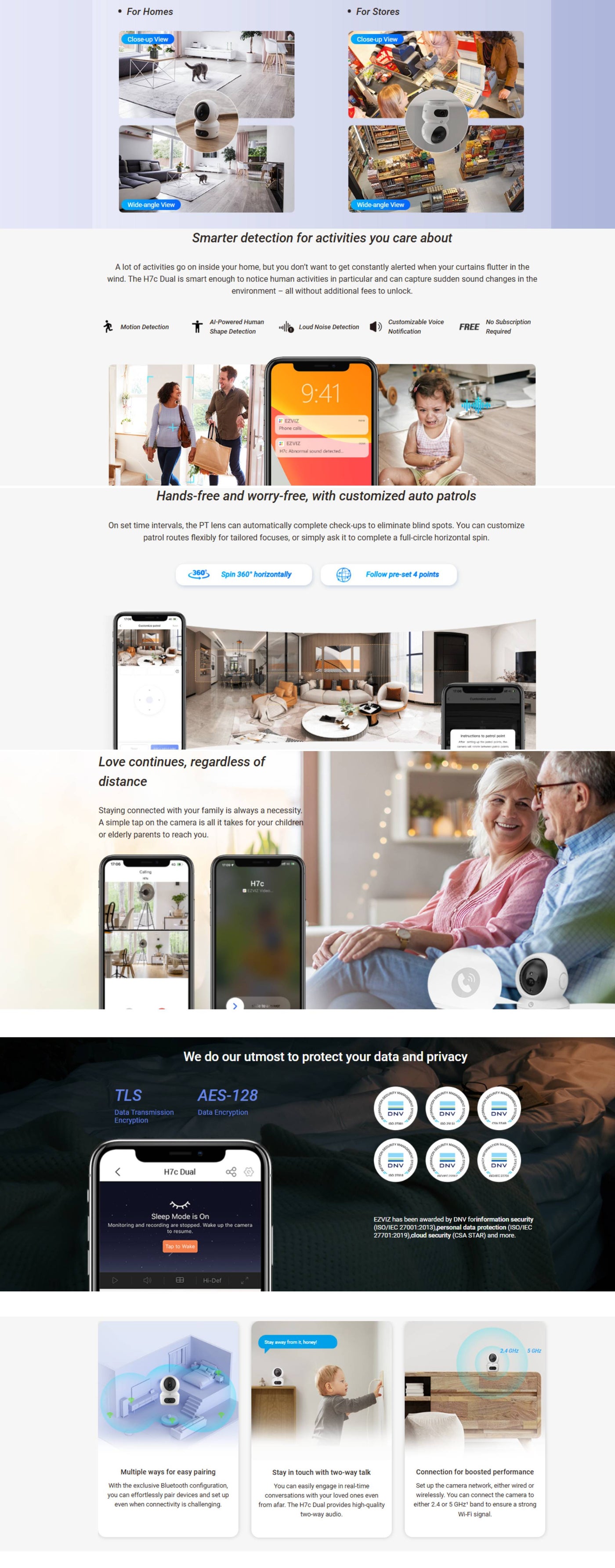 Smart Alarm Motion Detection, Human Shape Detection, Loud Noise Detection, Patrol Mode Detection
