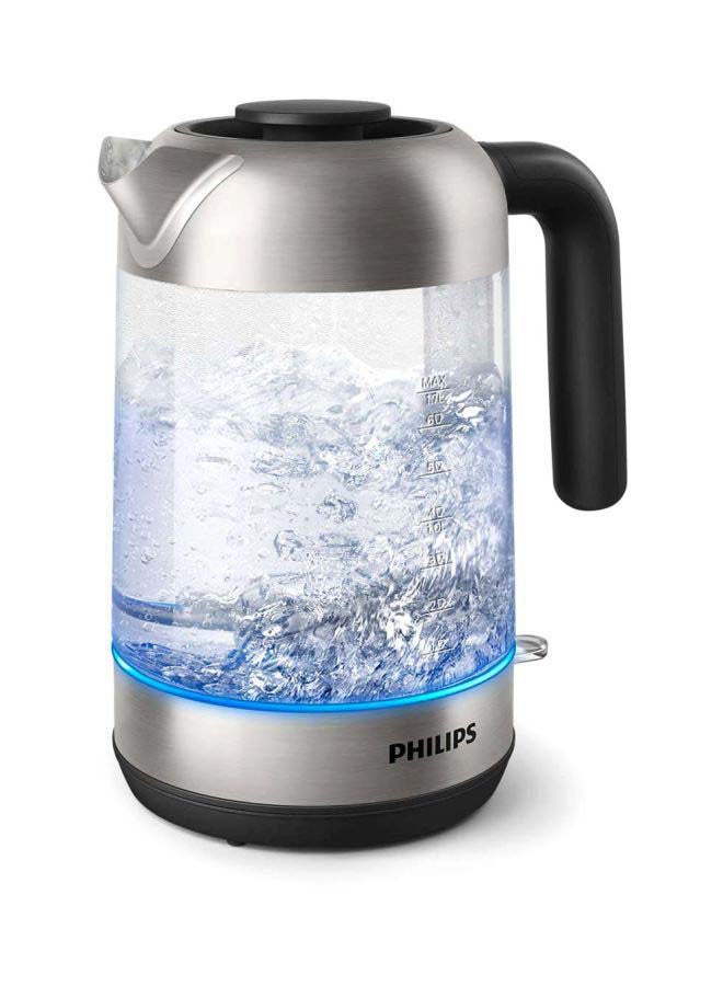 تتميز الغلاية الزجاجية بسعة 1.7 لتر من فاميلي بتصميم عصري مع مؤشر ضوئي أزرق بديهي داخل القاعدة لإعلامك عند تشغيل الغلاية. تمكن شركة فيليبس كيتل المستهلكين من غلي كمية المياه التي يحتاجون إليها، وبالتالي توفير الطاقة والمياه، مما يسهم في بيئة أفضل. غطاء قابل للإزالة بالكامل لسهولة الوصول أثناء التنظيف. يمكن لف السلك أسفل القاعدة، لذلك فهو الطول المناسب لأي مطبخ ويمكن تخزينه بسهولة. تتميز الغلاية اللاسلكية بقاعدة دوارة بزاوية 360 درجة لسهولة الرفع والاستبدال. عنصر تسخين مخفي من الستانلس ستيل يضمن الغليان السريع والتنظيف السهل. فلتر شبكي دقيق قابل للإزالة على الفوهة يلتقط جزيئات الترسبات الكلسية الصغيرة التي تصل إلى 200 ميكرون لضمان الحصول على كوب صافي. نظام أمان متعدد ضد الغليان الجاف، مع إيقاف التشغيل التلقائي عندما يكون الماء جاهزا. تم دمج ضوء المستشعر الأنيق والبديهي في القاعدة الزجاجية الشفافة لتظهر لك وقت تشغيل الغلاية. يمكن ملء الغلاية من خلال الفوهة أو عن طريق فتح الغطاء القابل للإزالة. مستوى الماء سهل القراءة مع مؤشر على جانبي الغلاية.