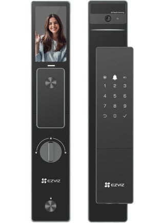 قفل باب ذكي 8 في 1 للدخول بدون مفتاح بنظام التعرف على الوجه ثلاثي الأبعاد ومساحة داخلية 8 جيجا ورؤية ليلية حتى 2 متر، واتصال داخلي نشط، ويمكن التحكم فيه عن طريق التطبيق من ازفيز، موديل DL50FVS (6068)