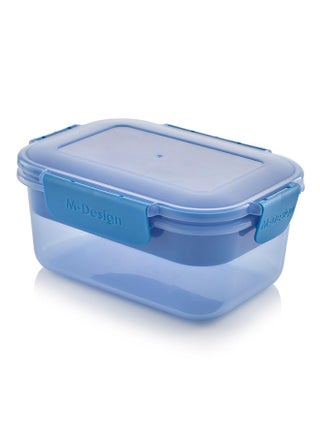 | الطقم يتضمن | The M-Design Fresco Lunch Box range is ideal for eating on the go. Our ‘lock tight’ clips and rubber seal ensure that your food stays fresh on the go. The removable tray is great for separating foods when you’re on the move and is perfect fruit, nuts or other snacks. All of parts of our lunch boxes are dishwasher, microwave and freezer safe. Clip 'n' Lock Lid BPA Free 20.8 x 16.3 x 12 cm |