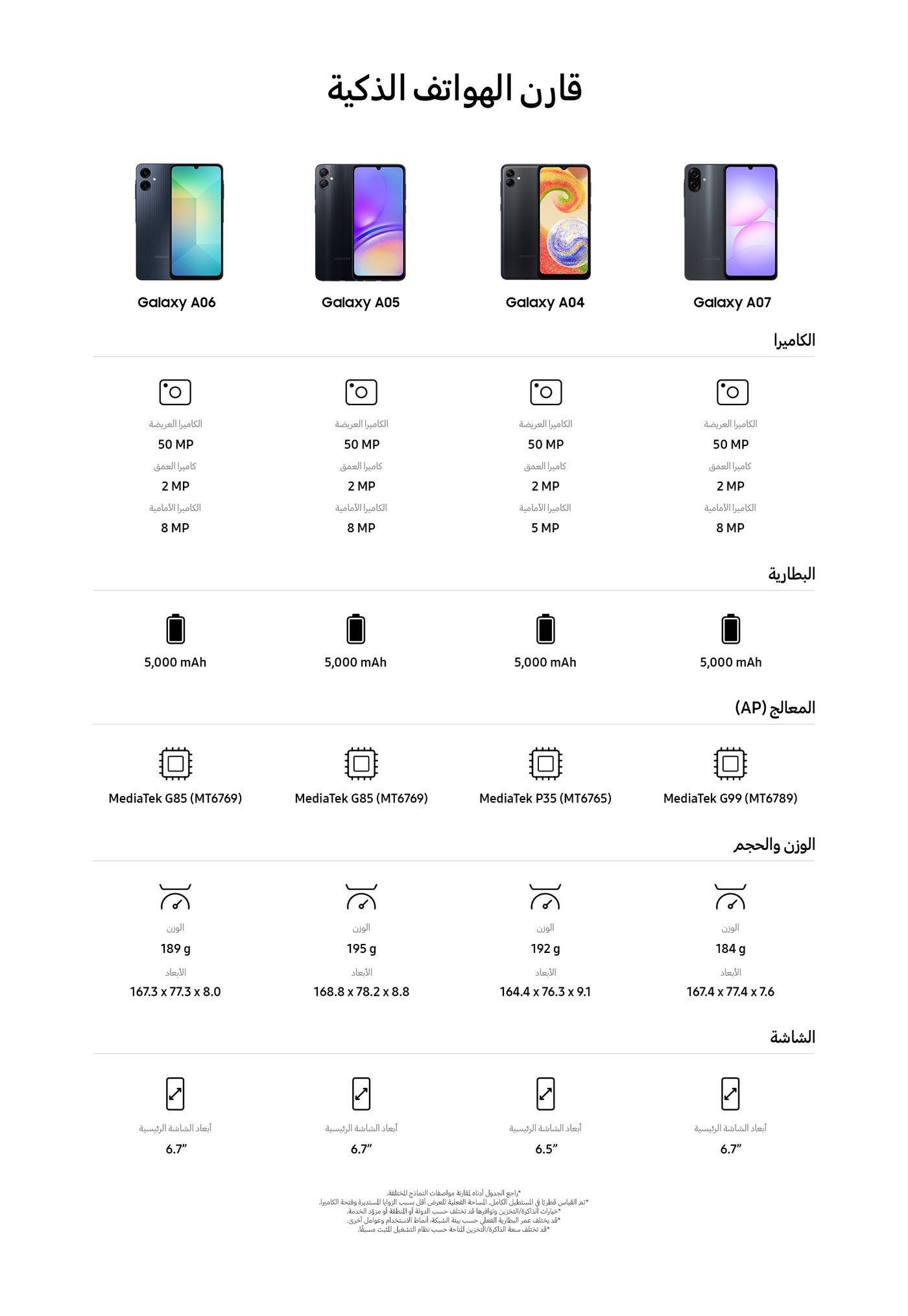 | اسم الموديل | Glaxy A07 |