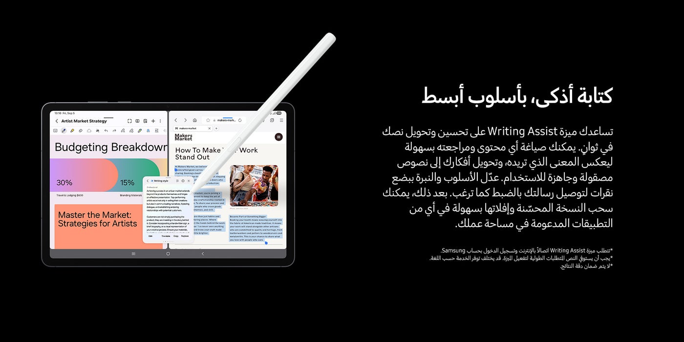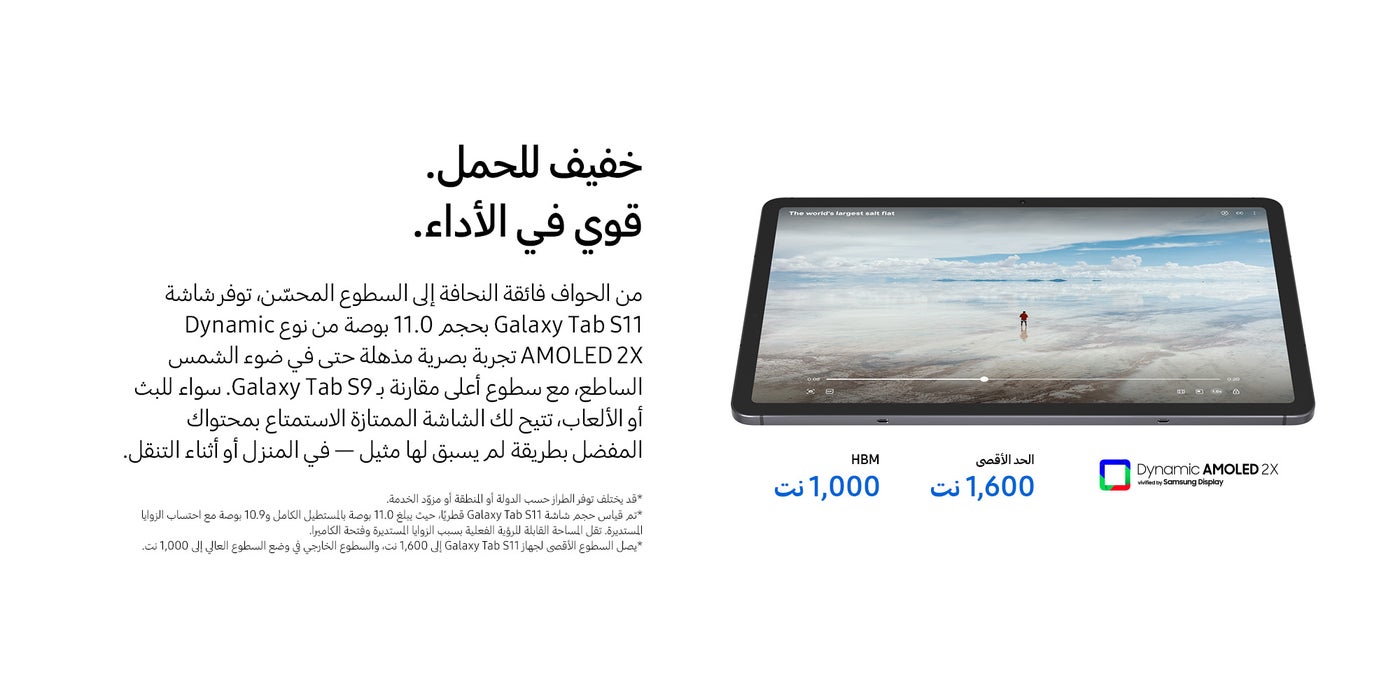 | حجم شاشة التابلت | أكبر من 11 بوصة |