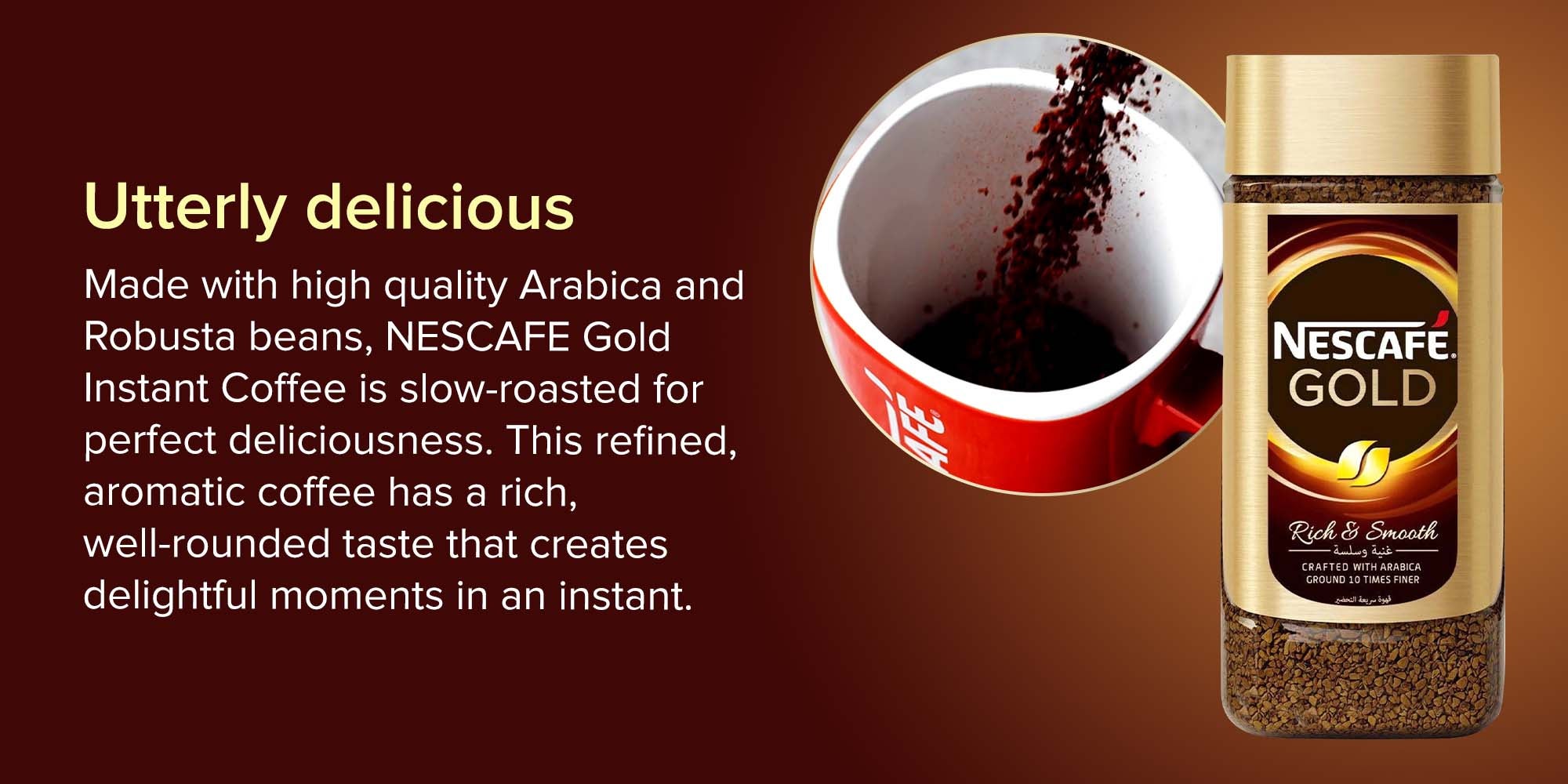 نسكافيه جولد هي مزيج من حبوب أرابيكا وروبوستا المزروعة في الجبال، والتي تجتمع معا لتقديم كوب نهائي رائع من القهوة العطرية بمذاق جيد. صنعت هذه الفاصوليا العالمية ببراعة بواسطة الخلاطات والمحامص، وهي محمصة ومطحونة لفتح الطعم الخفي والروائح العطرية التي ترفع من مزيج نسكافيه الذهبي ليتفوق على أعلى المعايير التي وضعها خبراء القهوة. ثم يتم التقاط هذه المكونات والأذواق باستخدام أحدث التقنيات مع عملية مجففة بالتجميد لتمنحك تجربة قهوة غنية ومتطورة في كل مرة تقوم فيها بالتذوق. تركيبة نسكافيه جولد - مصنوعة بعناية للحظات المهمة. عندما أطلقنا نسكافيه لأول مرة في سويسرا في 1 أبريل 1938، كان من المتوقع أن يكون نجاحا كبيرا. ثم بدأت الحرب العالمية الثانية في عام 1939. خلال الحرب، كانت نسكافيه عنصرا أساسيا في الحصص الغذائية للقوات الأمريكية، وأحبوا ذلك. قهوة سريعة وسهلة ولذيذة. بعد الحرب، تم تصدير نسكافيه إلى فرنسا وبريطانيا العظمى والولايات المتحدة، وأصبحت القوات الأمريكية سفراء علامتنا التجارية، ونشروا حبهم للنسكافية خلال بقية الأربعينيات، نمت شعبية نسكافيه. واليوم، تتمتع نسكافيه بشعبية في أكثر من 180 دولة وأصبحت القهوة المفضلة في العالم.