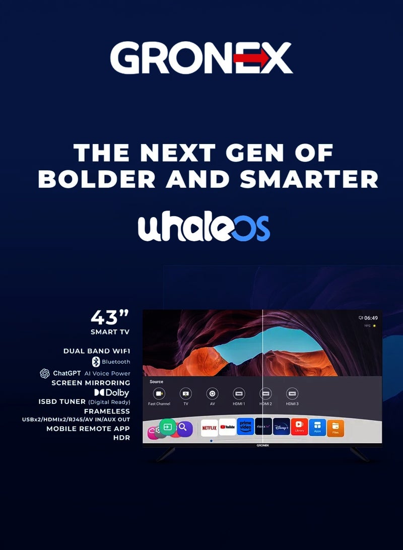 يقدم تلفزيون غرونكس مقاس 43 بوصة جودة صورة فائقة بفضل شاشته DLED ودقة 1080i/p، مما يوفر صورًا واضحة ونابضة بالحياة. مع معدل تحديث 60 هرتز، يضمن التلفزيون حركة سلسة لجميع محتوياتك. مزود بثلاثة منافذ HDMI ومدخلي USB، يمكنك بسهولة توصيل أجهزة متعددة مثل أجهزة الألعاب، وسماعات الصوت، وغيرها. يوفر هذا التلفزيون تجربة مشاهدة ممتازة على شاشة أكبر، مما يجعله خيارًا رائعًا للترفيه في أي غرفة. يتناسب تصميمه العصري بسلاسة مع مساحتك مع توفير أداء رائع.