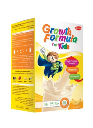 جروث فورميلا للاطفال مكمل غذائى متكامل و متوازن – 6.3 جرام بروتين - يساعد الاطفال على النمو بشكل صحى و تعويض نقص التغذية من سن 1 – 12 سنة - بطعم الموز- 400جم