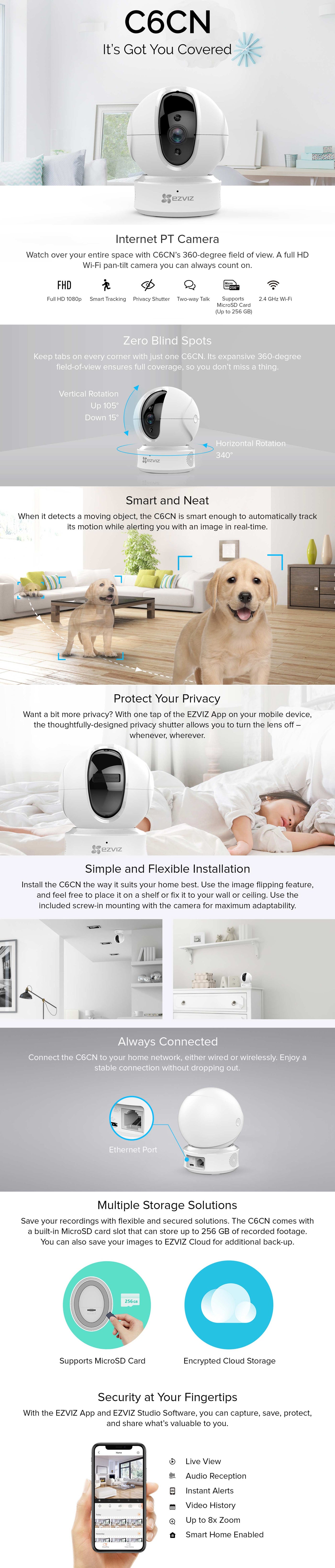 يمكن توصيل كاميرا c6cn بشبكة المنزل السلكية أو اللاسلكية