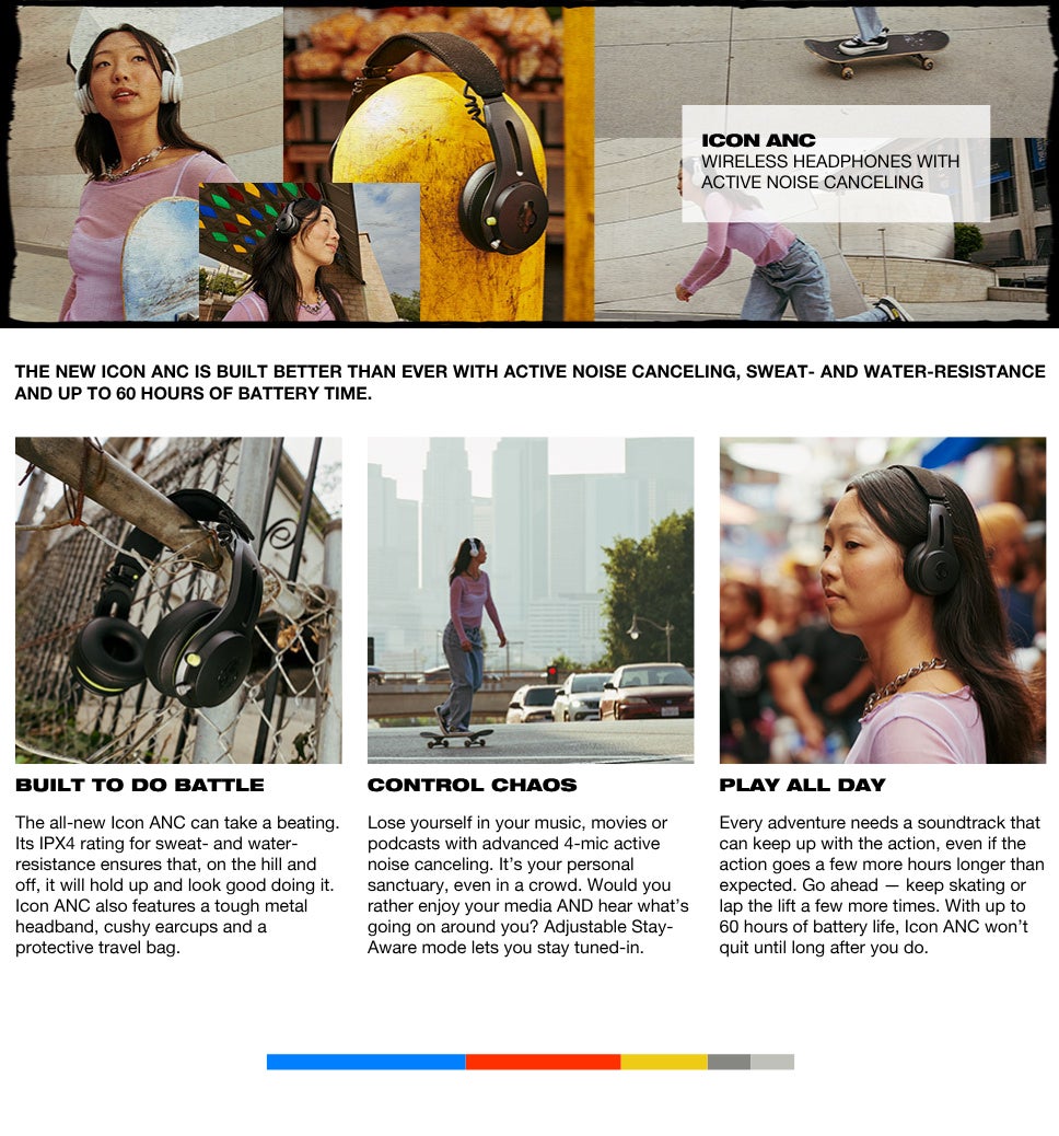 | محتويات العلبة | Icon® ANC Wireless Headphones; Removable AUX Cable; Travel Bag; USB-C; Charging Cable; User Guide |