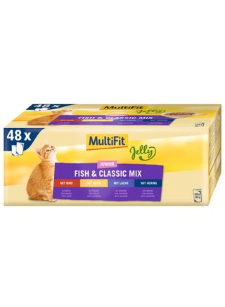 يعد MultiFit Junior Jelly Fish & Classic Mix Multipack حلاً غذائيًا ممتازًا للقطط الصغيرة، حيث يقدم مزيجًا متوازنًا من المكونات عالية الجودة والعناصر الغذائية الأساسية مثل الكالسيوم الإضافي للنمو. هذا الطعام الكامل، الذي تم تطويره لتلبية الاحتياجات الغذائية الخاصة للقطط الصغيرة، يعزز النمو من خلال تنوع نكهاته وسهولة تناول قطع اللحم الرقيقة في الهلام الناعم، مع توفير التنوع في وعاء الطعام أيضًا. طعام رطب مثالي بدون سكر مضاف أو ملونات أو مواد حافظة لتوفير أفضل دعم ممكن للكائن الحي الصغير. تخيل كيف سيخرخر طفلك الصغير من الفرح عندما تقدم له MultiFit Junior Jelly Fish & Classic Mix. أربعة أصناف لذيذة - مع الرنجة، مع الدجاج، مع السلمون ولحم البقر، كلها طرية في هلام ناعم. يوفر هذا الانفجار من النكهات التنوع ويحول كل وجبة إلى وليمة. لا يحتوي على سكر مضاف أو ملونات أو مواد حافظة، فقط الأفضل لطفلك الصغير. هذا الطعام ليس فقط علاجًا للحنك، ولكنه أيضًا مليء بكل ما تحتاجه القطط الصغيرة للنمو. المزيد من الطاقة والكالسيوم الإضافي للنمو – كل شيء لمنحهم أفضل بداية في الحياة.