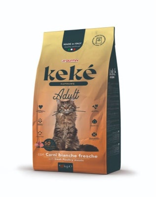 م تطوير كيكي سوبريم خصيصًا لتوفير تغذية كاملة ومتوازنة للقطط البالغة . يحتوي على اللحوم البيضاء كمصدر رئيسي للبروتين، مما يساعد في الحفاظ على العضلات قوية ويوفر مذاقًا شهيًا تحبه القطط.