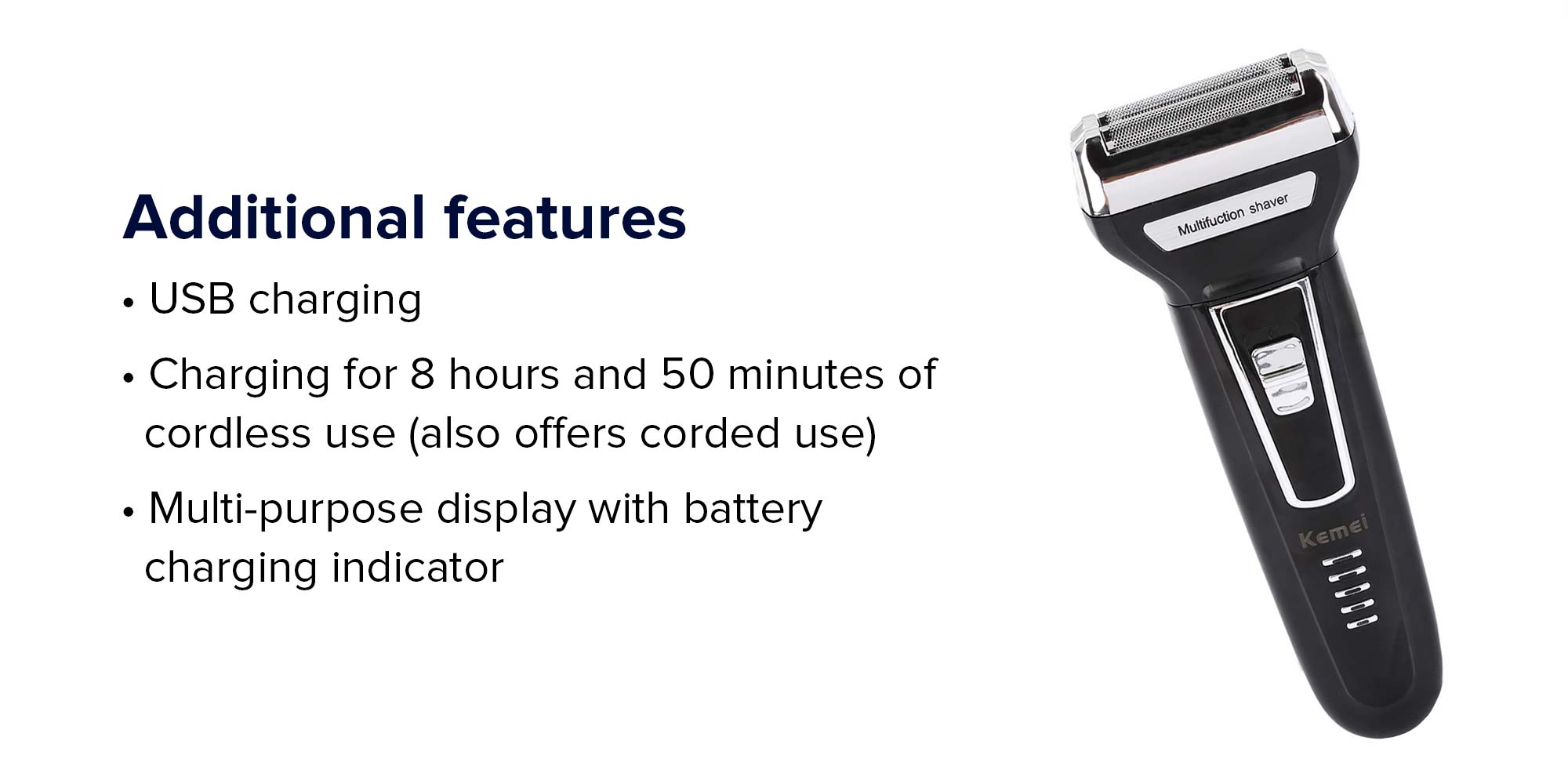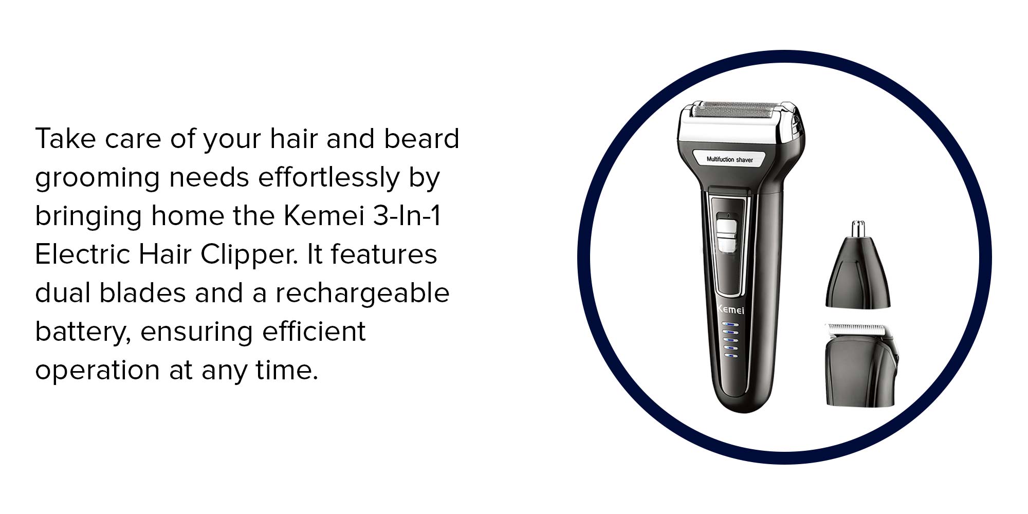 عدد إعدادات السرعة: 1 رقم المصنع: 6625539 رقم الطراز: KM-6558 رقم المنتج الخارجي: 4422732627 العلامة التجارية: كيمي المجموعة المستهدفة: الرجال عدد الرؤوس: 3 وظائف التشغيل: جاف، نوع هوية المنتج الخارجي: لا يوجد، النوع: متعدد الاستخدامات، مصدر الطاقة: كهربائي وبطارية، الحصول على مظهر جديد، أي يوم من الأسبوع، مع أداة التشذيب المتينة الشاملة هذه. 6 أدوات عالية الجودة تتيح لك الحصول على نمط الوجه الدقيق الذي تريده بسهولة. شفرات ذاتية الشحذ وعالية الأداء ولطيفة على البشرة للحصول على تشذيب مثالي متعدد الاستخدامات، قم بتشذيب وتصفيف وجهك مع 6 أدوات لتشذيب الحواف واللحية والرقبة لإكمال مظهرك، أداة تشذيب الأنف تزيل شعر الأنف والأذن غير المرغوب بها بلطف 4 أمشاط لسهولة الاستخدام
