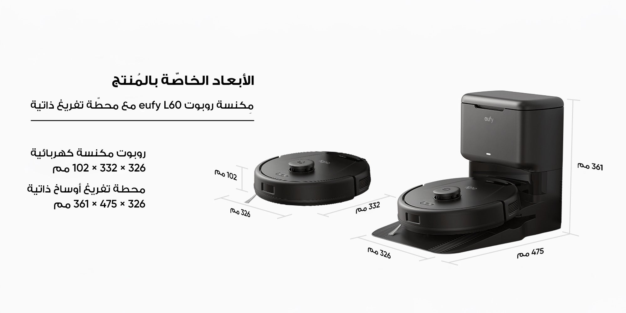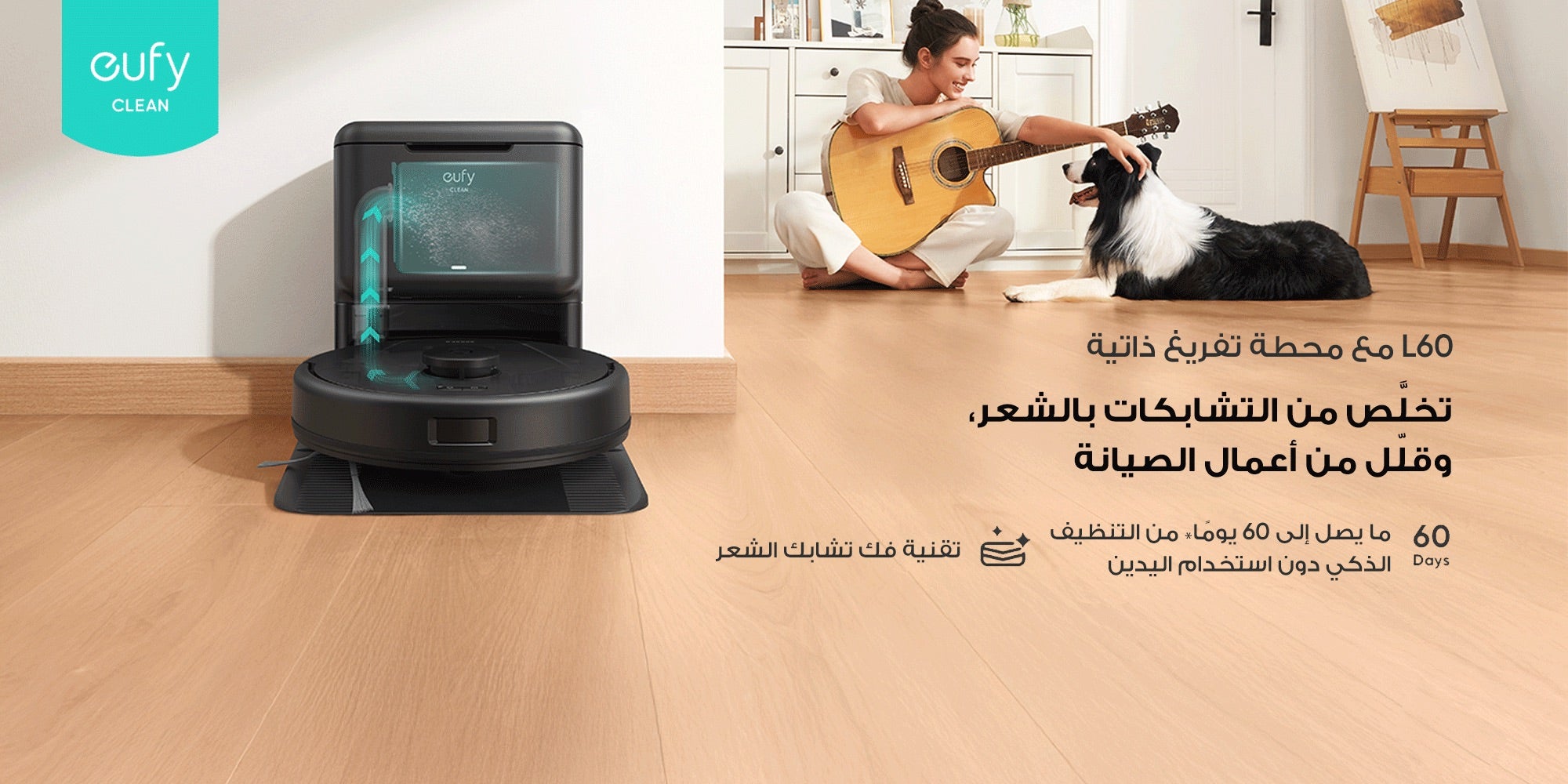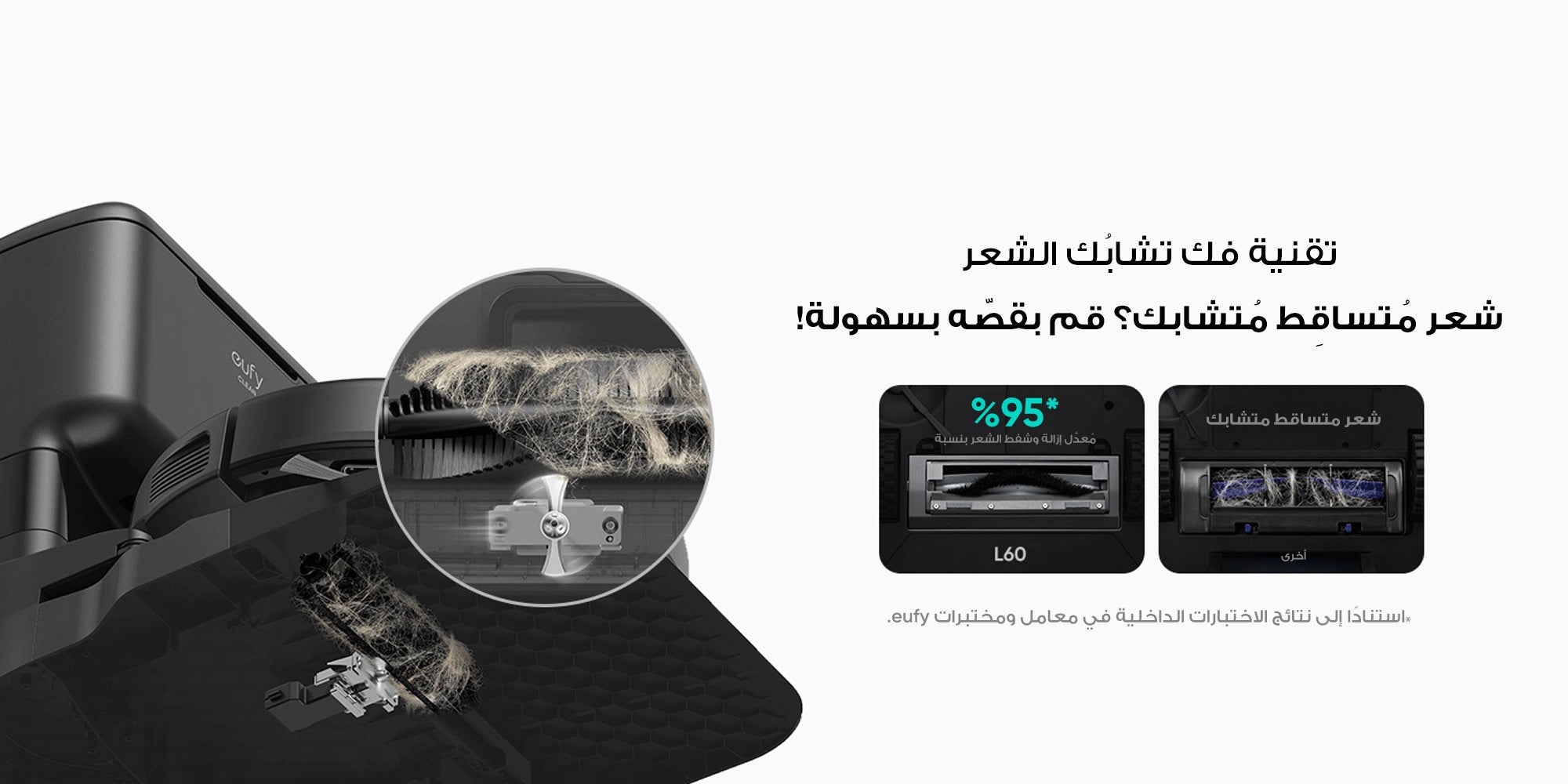 مكنسة روبوت مزدوجة eufy L60 مع علبة تفريغ ذاتية، تقنية فكّ تشابك الشعر، ما يصل إلى 60 يومًا من التنظيف الذاتي دون استخدام اليدين، مع ميزة الشفط القوي للغاية بقوة 5000 باسكال لشفط الشعر والغبار بكل أنواعه 50 W T2278V11