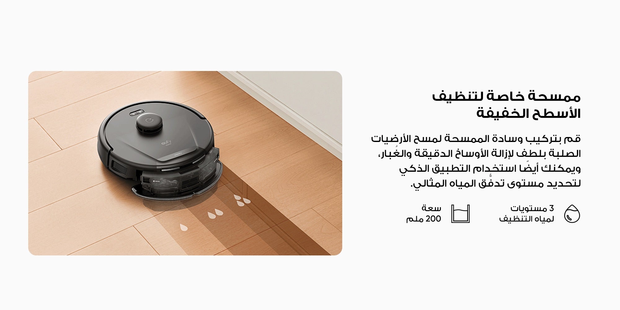 ميزة الشفط الفائق بقوة تصل إلى 5000 باسكال: يتم شفط الشعر وبقايا الطعام والغبار بسهولة، فقط بتمريرة واحدة يمكنك الحصول على أرضيات أكثر نظافة ولمعان.