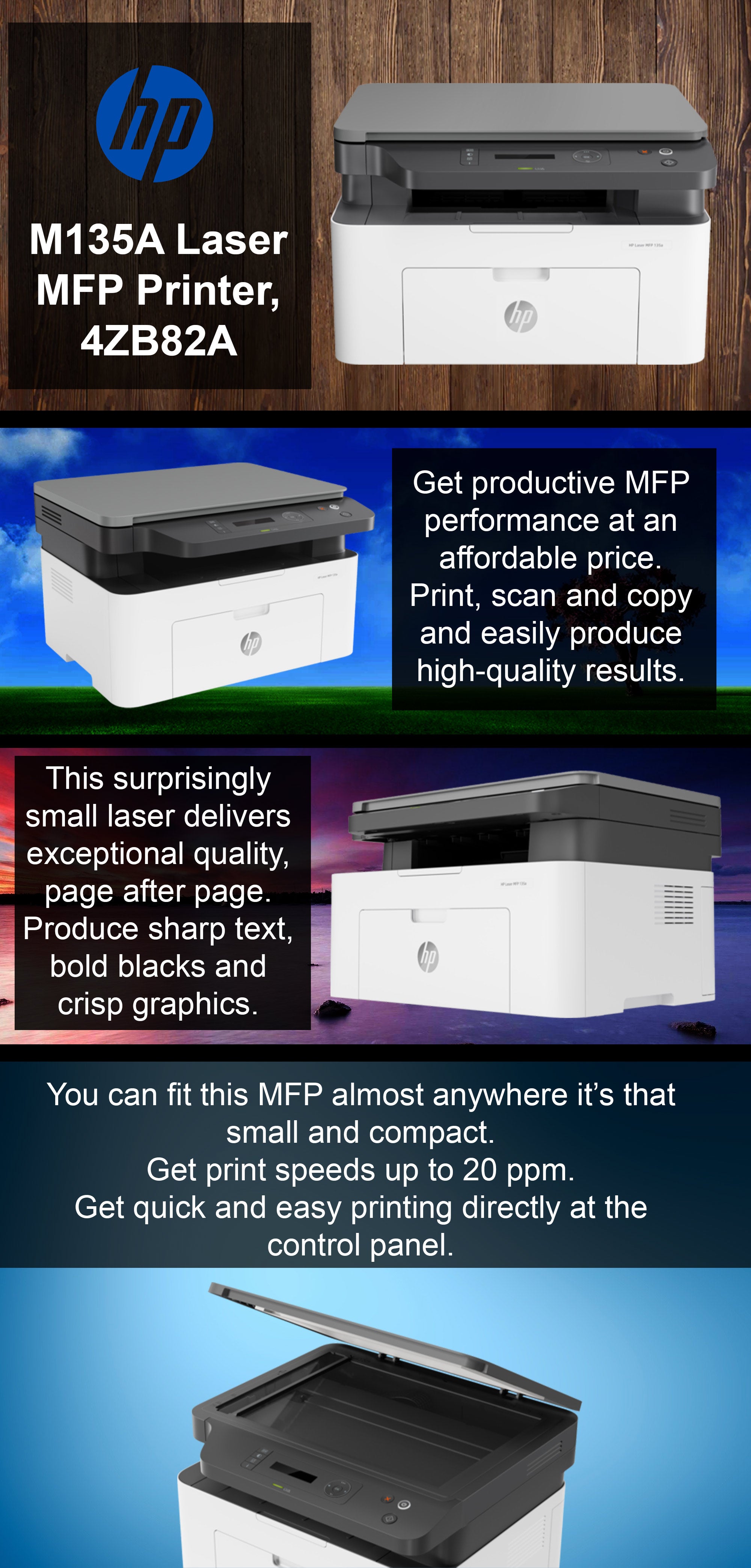طابعة مكتب ليزر MFP 135a متعددة الوظائف الكل في واحد بخصائص الطباعة / النسخ/ المسح [4ZB82A] أبيض