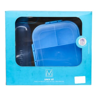 The M-Design Blue Lunch Set is a stylish and practical solution for everyday meals on the go. Designed with a sleek blue finish, this set includes a spacious lunchbox, secure snap-on lid, and matching utensils — perfect for school, work, or travel. Made from high-quality, food-safe materials, it's both durable and easy to clean. The compact design fits easily into backpacks or bags, while the leak-resistant lid helps keep food fresh and mess-free. Ideal for those who value convenience and modern design in their daily routine