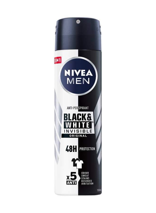 | محتويات العلبة | NIVEA MEN Black & White Invisible Antiperspirant Deodorant Spray, Original, 72H Active Protection, 5IN1, Anti-Odour, Sweat, Stains, Residues & Irritation, 150ml |