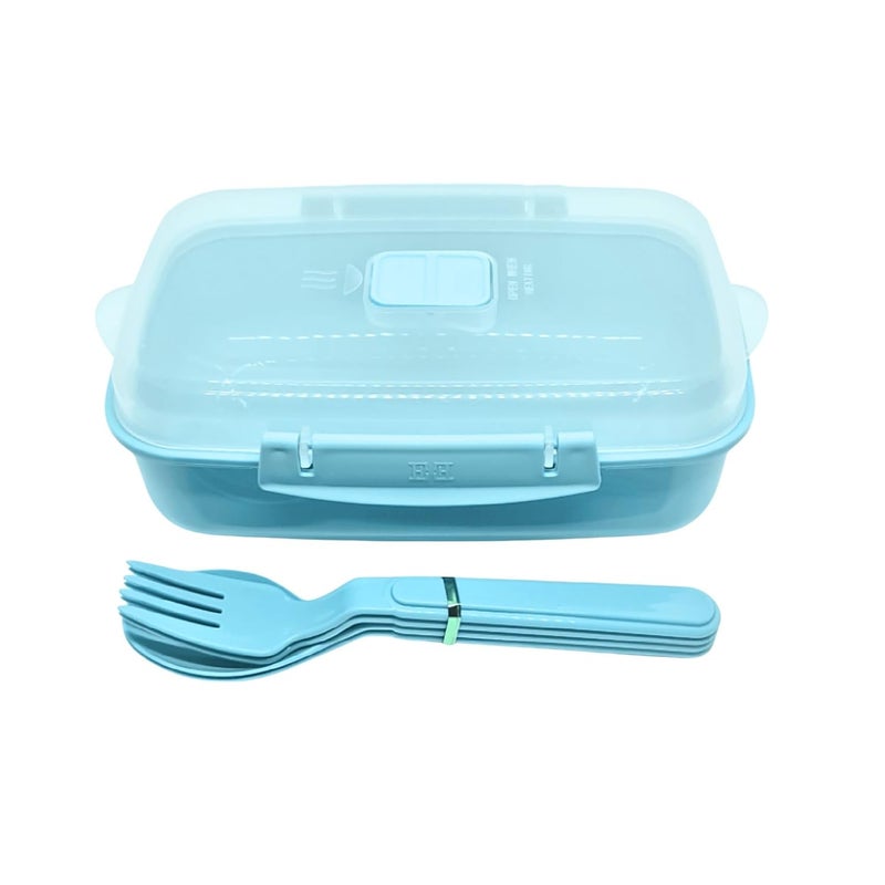 Microwave Safe Plastic Lunch Box with gift set 2 Spoons, 2 Forks (Blue)