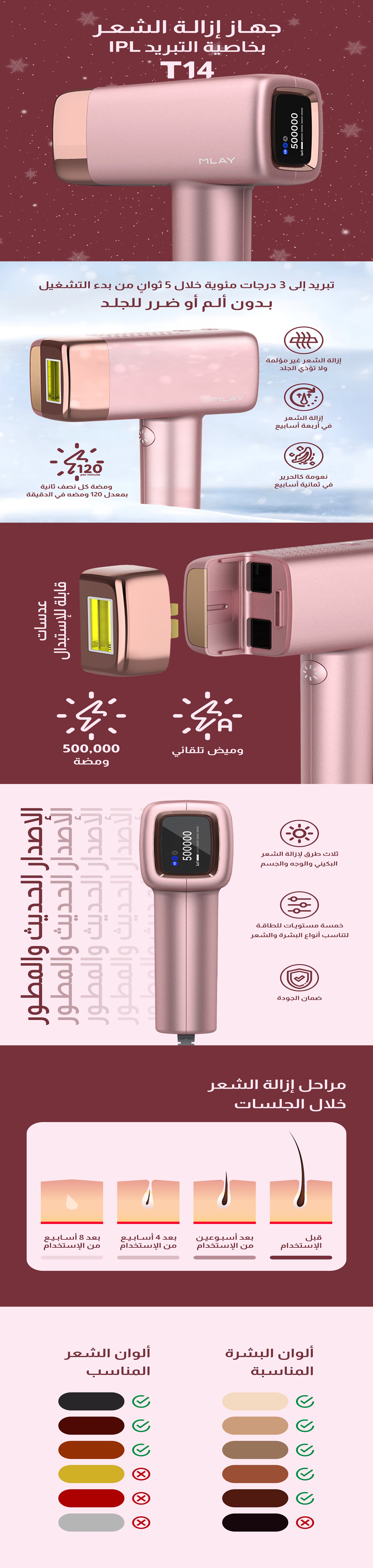 | محتويات العلبة | Laser hair removal device + glasses + charger + cotton cleaning buds |