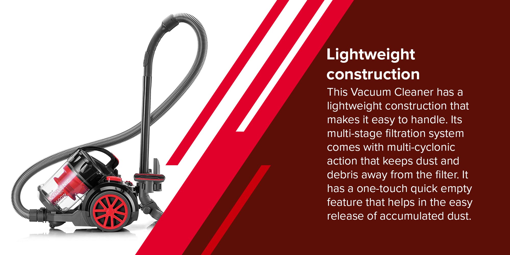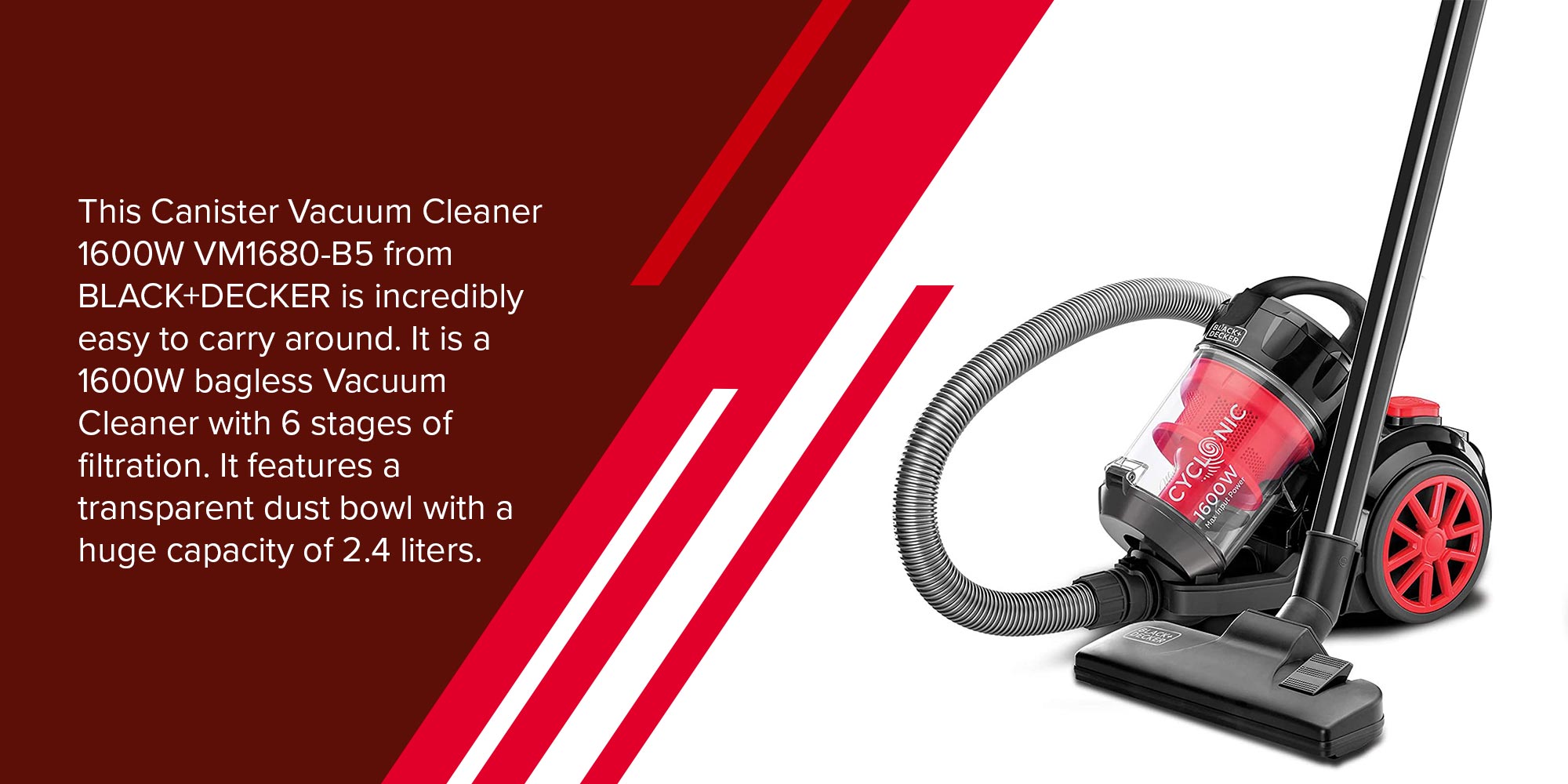 | أنبوب معدني تلسكوبي تصميم سلك طويل يتيح سهولة المناورة مكنسة كهربائية عالية الطاقة بقدرة 1400 وات لتنظيف كل ركن وزاوية منتج يتميز بخرطوم دوار بزاوية 360 درجة لمزيد من الراحة مقبض سهل الحمل |