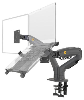 حسّن صحتك العامة من خلال توفير زاوية مشاهدة مريحة للغاية للعمل أو الألعاب - استمتع بحرية تعديل ارتفاع وزاوية شاشتك وجهاز الكمبيوتر المحمول. يُعدّ حامل الشاشة والكمبيوتر المحمول Nb H160-FP ذراعًا قويًا للشاشة والكمبيوتر المحمول، وهو ذراع شاشة تفاعلي مريح يسمح لك بوضع شاشاتك أينما تحتاجها لتتمكن من العمل براحة تامة. يساعد على زيادة راحة المشاهدة وتقليل إجهاد العينين والظهر والرقبة. يوفر المقبض القابل لضبط الارتفاع مساحة عمل أكبر، مما يترك مساحة خالية على المكتب أو سطح المكتب عند عدم الاستخدام.