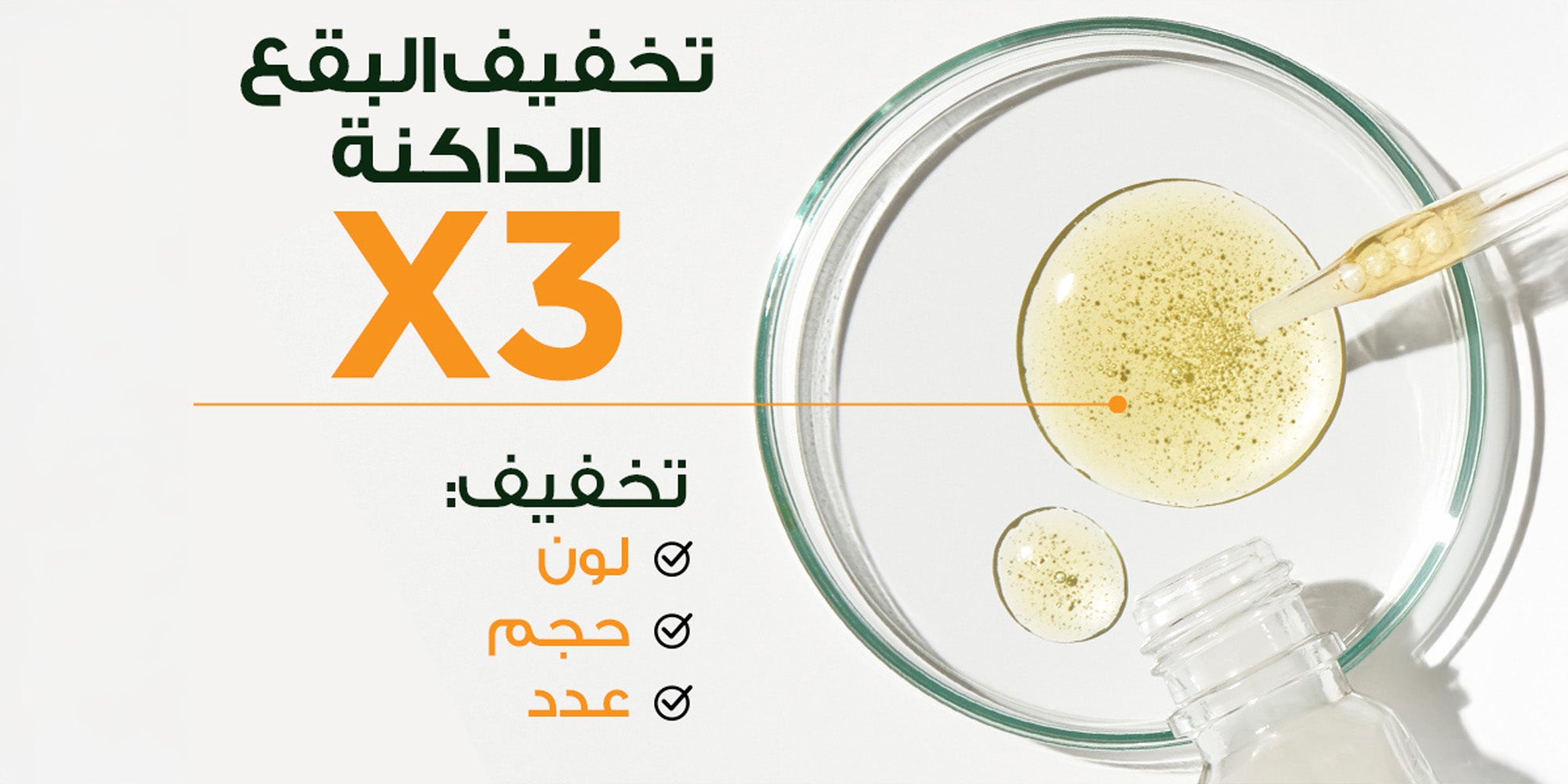 تعمل بفعالية لتفتيح كل انواع البقع الداكنة من اثار الحبوب و تصبغات البشرة
