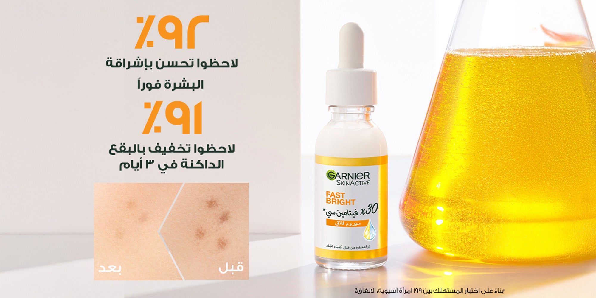 •سيروم غارنييه فاست برايت ٣٠ x الفيتامين سي و نياسيناميد مضاد للبقع الداكنة- 15 مل للعناية بالبشرة