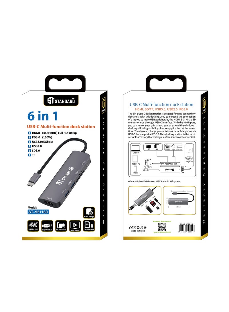 محطة التوصيل ST-Standard 95116D تمنحك توسعة احترافية لمنفذ USB-C في جهازك، مع إمكانية عرض 4K، نقل بيانات عالي السرعة، وقراءة كروت الذاكرة، بالإضافة إلى شحن سريع PD في نفس الوقت.