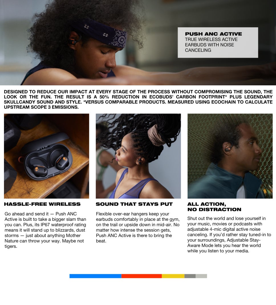 | محتويات العلبة | Push® ANC Active True Wireless Earbuds; Charging Case; Ear Gels (S, M, L); USB-C Charging Cable; Quick Start & User Guides |