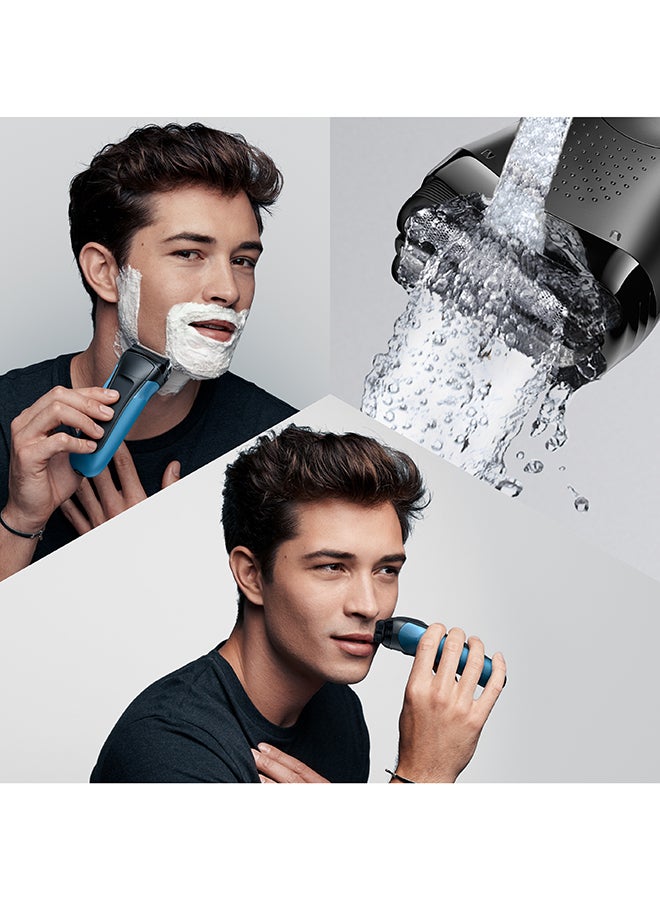 ماكينة حلاقة كهربائية 310BT شيف آند ستايل من المجموعة 3 قابلة للشحن للاستخدام الرطب والجاف أسود/أزرق
