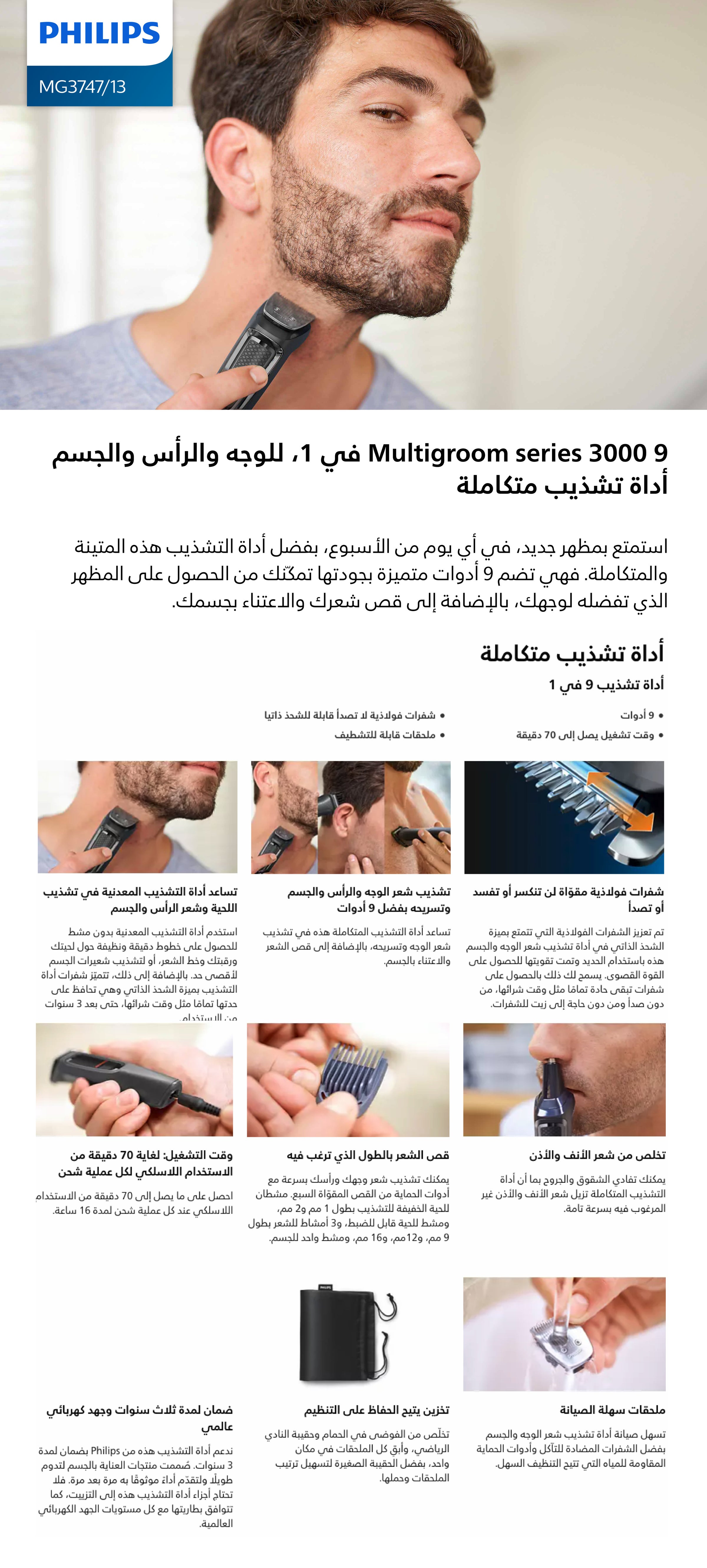 | محتويات العلبة | 1 x Hair Trimmer, 1 x Nose Trimmer and 6 x Trimmer Clip |