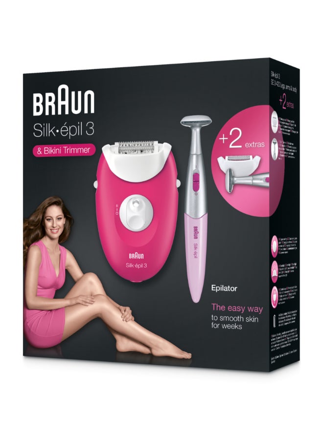 The Braun Silk-épil 3-420 is ideal for beginners for long-lasting hair removal. Enjoy weeks of salon-smooth skin thanks to the 20-tweezer system that gently removes hairs by the root. The massage rollers help to stimulate the epilating area and make the experience less painful. The cord allows you to epilate with no charging breaks, all in one go. Design the most perfect lines with the bikini styler - precision trimming at your fingertips.