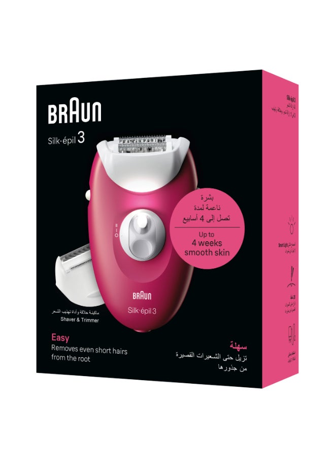 جهاز إزالة الشعر براون سيلك-إيبيل 3 سكين سبا 3-032، رأس حلاقة، فرشاة تنظيف، ضوء ذكي، سلكي