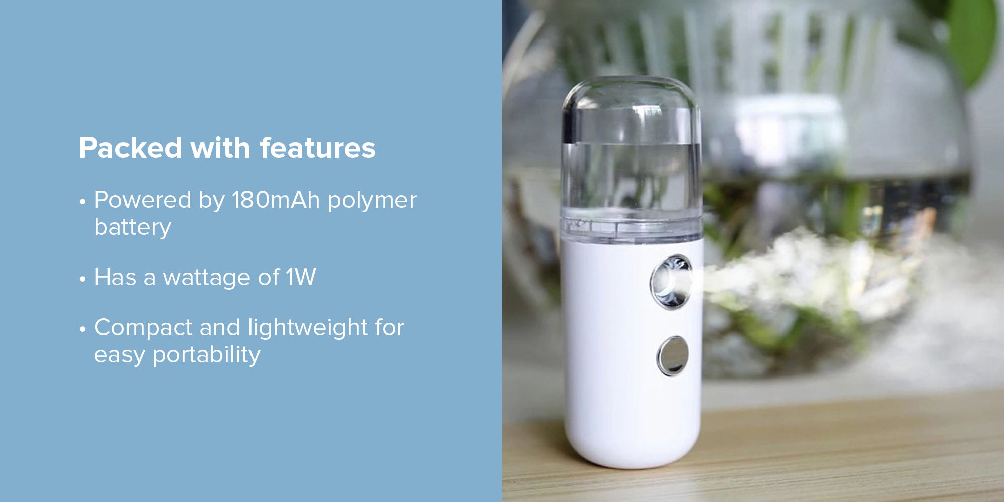 - يتم إعادة شحنه بواسطة منفذ USB، وهو قابل للحمل والاستخدام. - تشغيل سهل، صدمة عالية التردد، مما ينتج عنه عدد كبير من أيونات جزيئات الرذاذ الدقيقة. - بخاخ الماء بتقنية النانو هذا مع خزان ماء كبير يمكنه اختراق البشرة بعمق كما انه حيوي للبشرة لسهولة الاستخدام. - الجزيئات الذرية أكثر دقة وسهلة الامتصاص. - استخدام المياه المعدنية الطبيعية دوناً عن الماء النقي والماء المقطر وما إلى ذلك. إذا كانت كثافة جودة المياه مرتفعة جداً أو منخفضة جداً، فإنها ستسبب انسداد المحقنة.