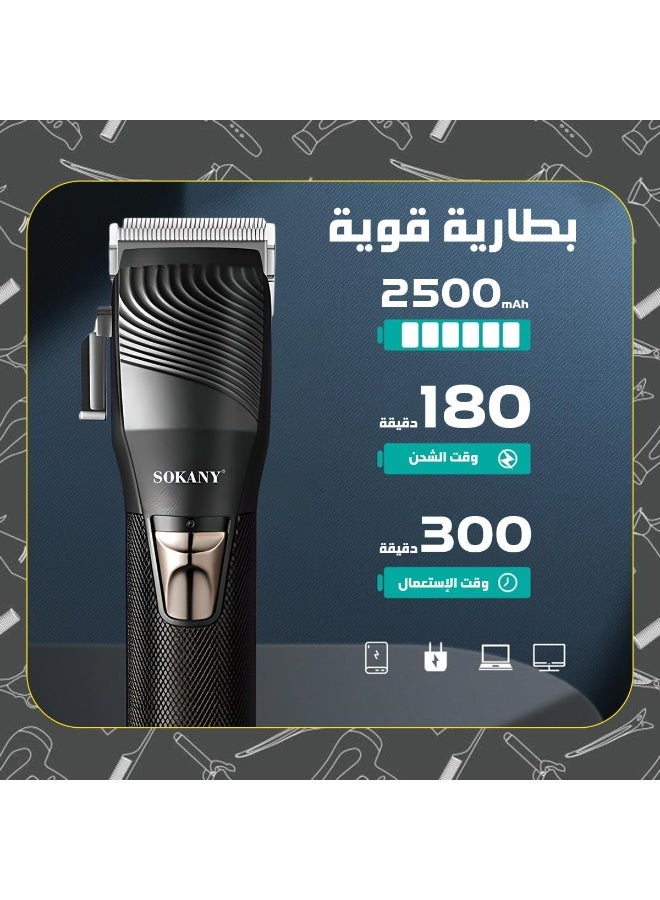 | محتويات العلبة | ماكينة الحلاقة - أمشاط للتدريج ( العدد الإجمالى 6 أمشاط لتدريج الشعر ) - مشط لحماية الشفرات - كابل شحن - فرشاة للتنظيف - زيت للتنظيف |