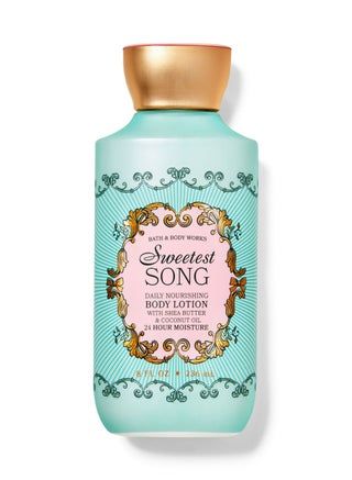 Indulge your skin with the Sweetest Song Nourishing Body Lotion from Bath & Body Works, designed to provide deep hydration and leave your skin soft and smooth all day. Its rich, nourishing formula moisturizes and rejuvenates the skin while enveloping it in a sweet, refreshing fragrance that uplifts your senses. Suitable for all skin types, this lotion is the perfect addition to your daily skincare routine.