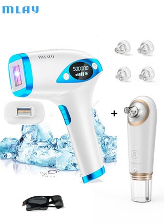 جهاز إزالة الشعر T4 بدون ألم IPL، إزالة الشعر بالليزر مع نظام التبريد، جهاز إزالة الشعر الدائم 500000 ومضة للنساء والرجال (مع إزالة الرؤوس السوداء)